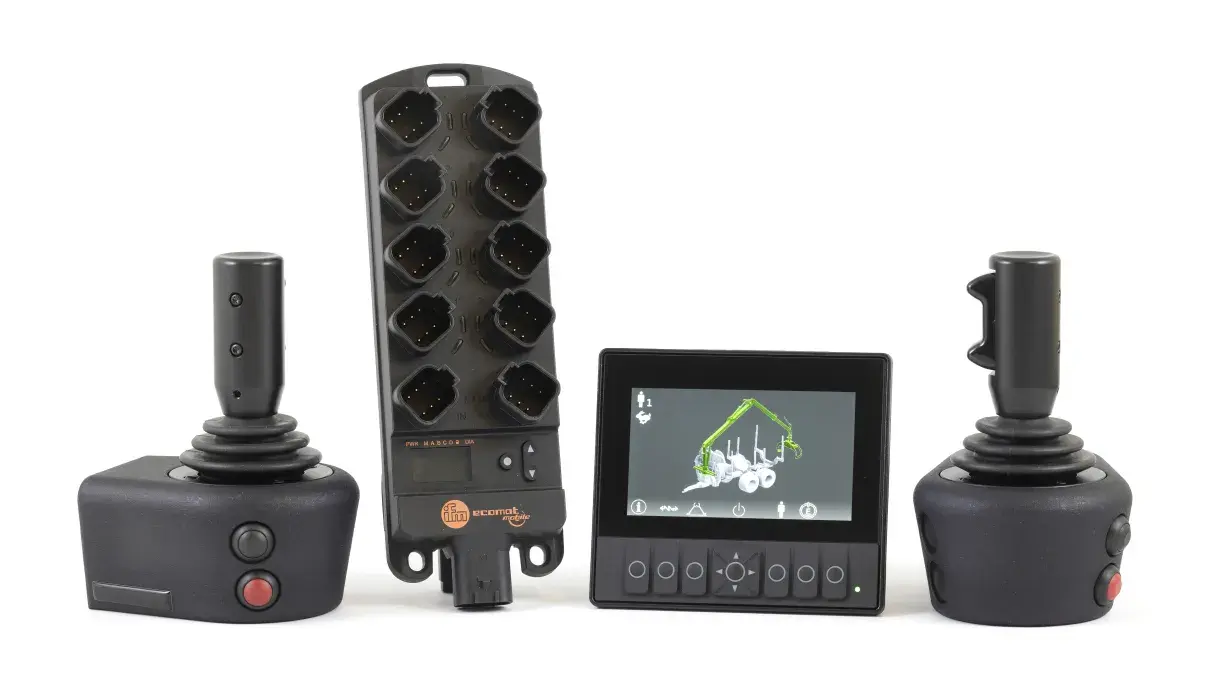 En plus des avantages de la commande proportionnelle électrique, le système est ici complété par un système CANBUS avec écran et joysticks. Directement sur l’écran, vous pouvez régler la vitesse de la grue afin de l’optimiser. Le système peut facilement être basculé entre différents opérateurs afin que chaque utilisateur dispose de ses propres paramètres pour la grue.